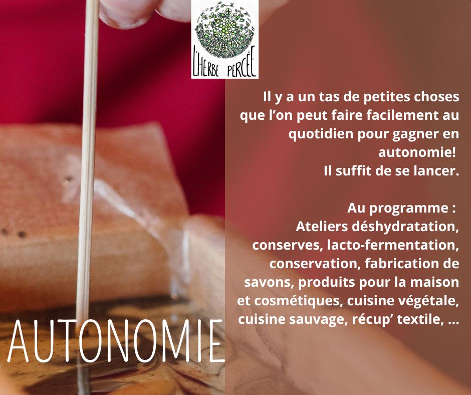 - Fabrication de produits maison pour le corps (savons, shampooings solides, crèmes, baumes aux plantes sauvages, …)